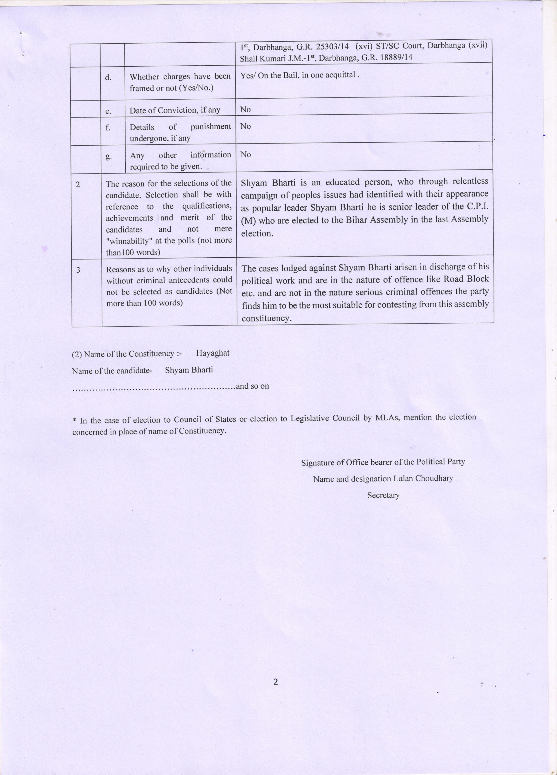 Criminal Antecedent of CPI(M) Candidates Contesting in Bihar elections 2025
